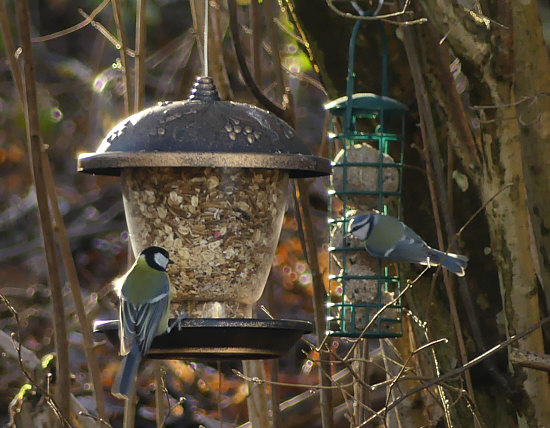 Beate war wieder im Wald und hat die Futterstellen für die Wildvögel aufgefüllt ... sofort kamen sie herbeigeflogen und begannen mit dem Futtern.