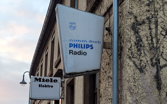 Auch vom Spaziergang ... das muss ein sehr altes Schild sein ... aber ... Überraschung ... da ist auch heute noch ein Elektro-Laden drin.