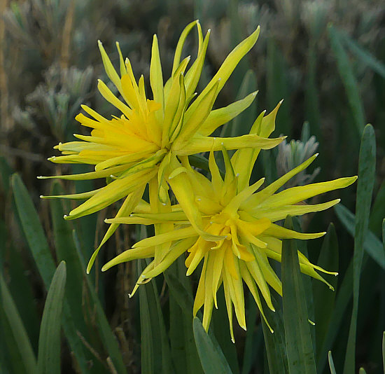 gefüllte Narzisse in einem Vorgarten