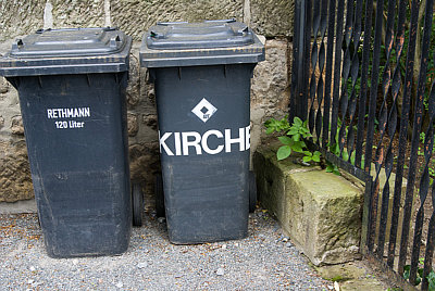 ...hmm...die Kirche in der Abfalltonne...oder die Abfalltonnenkirche...da muss ich mal überlegen,was das bedeuten könnte..