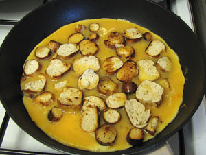 Zucchini-Weißbrot-Eierpfanne - mit Knobi?