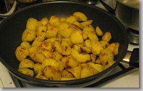 15. die nun etwas trockeneren Kartoffeln in die Pfanne