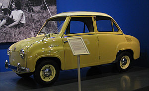 Goggomobil T 300, 1957, in so einem hab ich sogar mal gesessen ... der Motor ist hinten, meine Füße konnte ich bis zu den Lampen strecken: