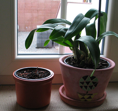 Beates Fensterbank ... es geht um den linken Topf mit fast nichts drin ... aber nur fast.