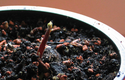 ... vor ein paar Wochen einfach mal einen Avocado-Kern in die Erde gelegt. Auf einmal fing der an zu treiben. Experiment geglückt. Mal sehen, was weiter passiert ... ich bleib am Ball Kern.