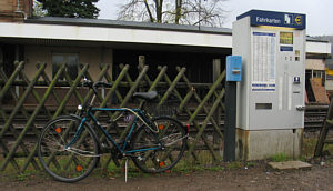 Fahrkarte gezogen ... 2,70 Euro. Mit meinem Golf hätte ich 1,80 Euro Benzinkosten und Beate mit ihrem Ibiza hätte 1,10 Euro. Also ist Bahnfahren viel zu teuer. Erst recht für die, die sich kein Auto leisten können.