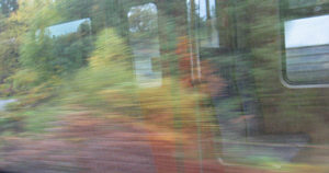 Ist man drinnen, so kann man sich am vorbeirauschenden Herbstwald erfreuen: