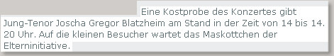 Ich hab mich sogar kurz mit ihm unterhalten können und auch mit einem älteren Herrn, der sich überraschenderweise als der Vater des Tenors herausstellte. Schönes Gespräch.