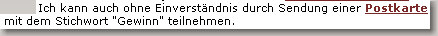 ... auch noch per Schneckenpost mitmachen kann. Sowas gibts noch. Hat aber nur einen Haken: in den AGBs steht nämlich folgendes: