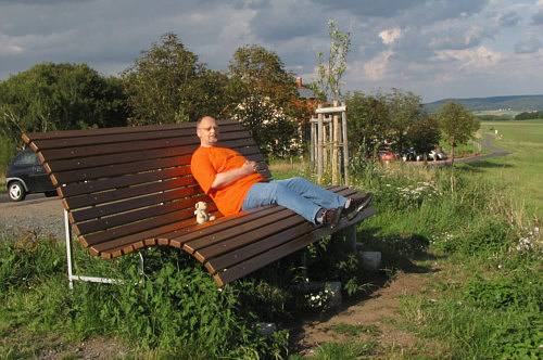 Nur zur Info: die Bank ist echt, der Engelbert auch ... nix Fotomontage.