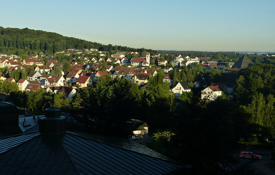 Der Blick aus meinem Fenster heute morgen um 6.55 Uhr. Das ist der Landstuhler Stadtteil Atzel mit evangelischer Kirche (mit Turm) und katholischer Kirche (Pyramide).