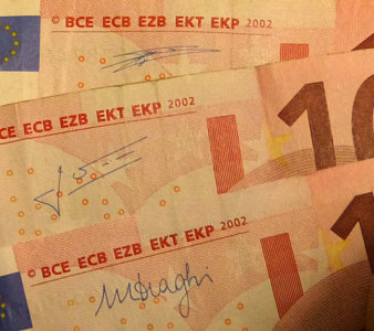 In der Adventssocke von Beate: u.a. Merci-Edelrahm und ein Zwanzig-Euro-Schein aus Schokolade.