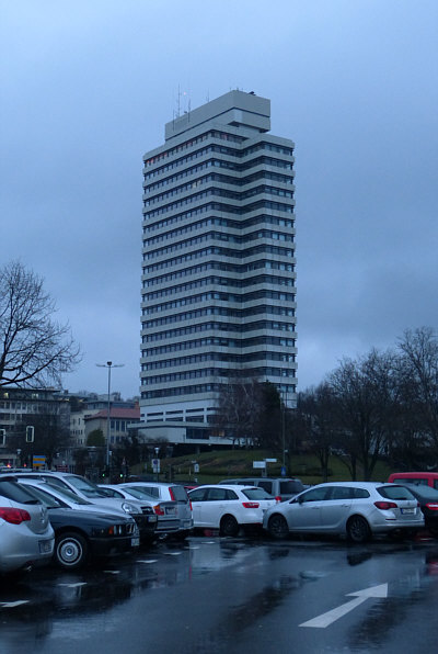 Das Rathaus von Kaiserslautern an einem trüben ersten Februartag.