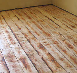 ... und darunter findet man nach Abschleifen einen Dielenboden: