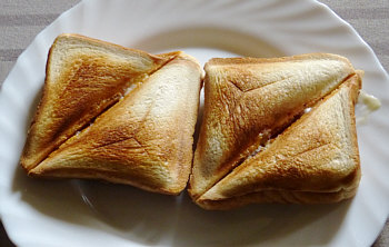 ... gabs heute Morgen Toast, mit dem Sandwichmaker gebacken und mit Wurst und Käse gefüllt.