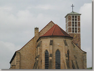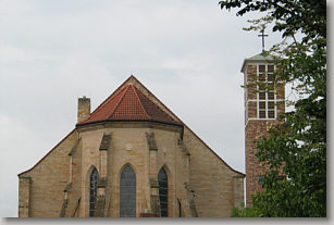 Das Bild oben verfälscht, der Turm steht einsam und alleine neben der Kirche: