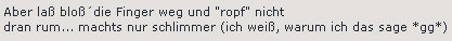 Nur: wie macht man das ... "nicht" ropfen, rupfen, knibbeln ? Wenn ich Schorf (Kroscht) an der Lippe habe, dann ist der schneller weg als meine Vernunft das erlaubt. Ich bin ein alter Knibbeler ... seufz.