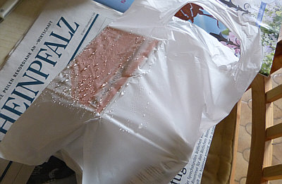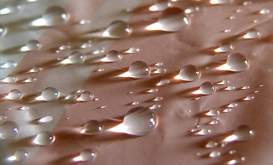 Plastiktüte, Tropfen ? Man könnte eigentlich mal einen Fotowettbewerb machen a la "besprüht eine Plastiktüte und fotografiert die Tropfen".