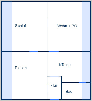 Das blaue sind die Türen. Die Tür zwischen Schlaf- und Wohnzimmer hab ich schon lange nicht mehr gesehen, die ist zugestellt.