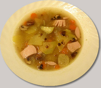 Die ziemlich perfekte Suppe gabs heute ... zwei Töpfe mit gleichen Hauptzutaten (Kartoffeln, Möhren, Zwiebel, Pilze), die dann von Beate und mir jeweils anders fertiggekocht und ergänzt wurden. Wir sind recht verschieden, was das Essen betrifft und so hat nun jeder genau seine Suppe, wie er sie sich vorstellt. Das da oben ist meine. War richtig gut. Wird morgen nochmal richtig gut, denn ... es ist noch Suppe da (es ist noch Suppe da, wer hat noch nicht, wer will nochmal ...).