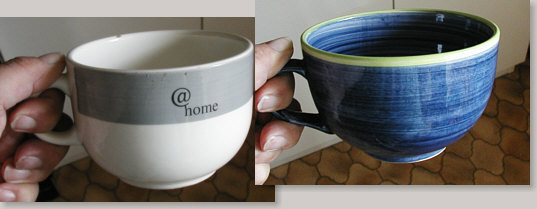 9 Jahre ist das jetzt her ... die Hand existiert noch, die blaue Tasse ebenfalls (aber sie steht nur noch im Schrank) ... über den Verbleib der linken Tasse ist nix überliefert ... entweder im Keller in einer Kiste oder auf dem Friedhof der Kaffeetassen.