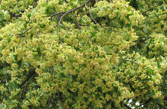 Eine Linde, die mehr Blüten als Blätter hat ... der ganze Baum ist dicht an dicht voller Blüten.