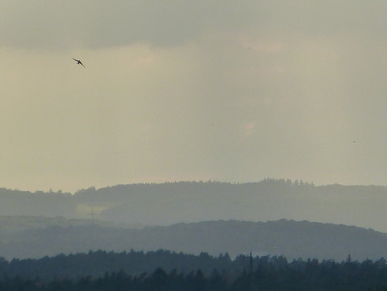 Ein Bild wie ein Moment der Ruhe ... Zenmediation mit Schwalbe am Abend. In Natura sieht man die Schwalbe gar nicht (weil zu weit weg, das Bild ist gezoomt und eine Ausschnittvergrößerung) und wenn, dann nur für den Bruchteil einer Sekunde ... doch hier im Blog ist das wie ein Ruhepol.