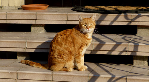 Ein Kater, der darauf wartet, dass die Haustüre aufgeht und er ins Warme darf