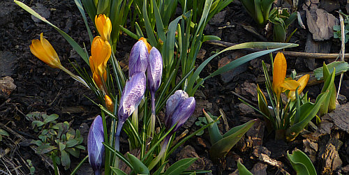 Gebeutelt-verfrorene Frühlingsboten, ziemlich armseliger Anblick
