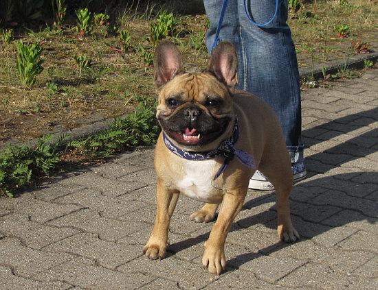 Hektisch-liebevoll leckte er meine Hand ab ... das Wort "zerfleischen" kennt ... eine ganz friedliche französische Bulldogge, die mir beim Spaziergang begegnet ist. Und überhaupt nicht nachtragend, denn ich war ziemlich frech gewesen und hatte "ist das ein Hund oder eine Fledermaus" gefragt ... gottseidank war auch Frauchen friedliebend und tat so, als ob ich auch sie nicht beleidigt hätte.