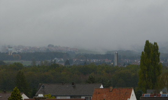 ... ist der Blick von Bruchmühlbach in Richtung Miesau ... der Turm rechts ist der Turm der früheren Grundigfabrik und links oben ist der Wasserturm von Miesau.