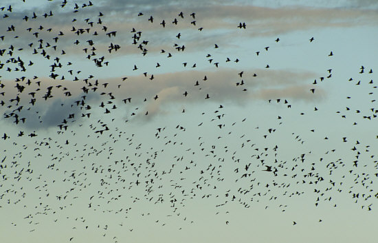 Rush Hour am Himmel ... Stare in großer Menger fliegen von Wiese zu Wiese im Nachbarort.