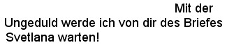 Wer, die Svetlana ? Die hat mein Profil gesehen ? Und will mir trotz meinem Bauch, den man in Profil deutlich sieht, schreiben ? Will sie mich beschimpfen ? Oder verkauft sie Abführmittel ?