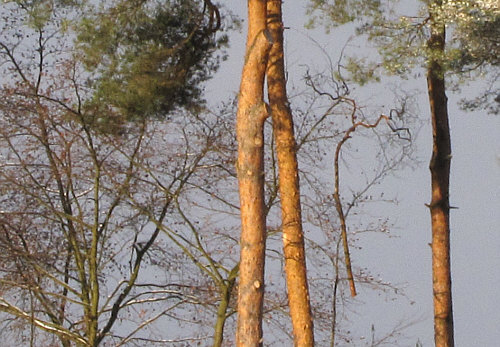 Ich hab das nicht gleich gesehen, sondern einfach nur die Bäume fotografiert ... und erst später auf der Festplatte den noch nicht gefallenen Ast entdeckt.
