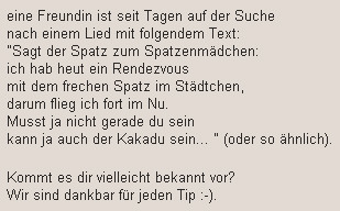 Ich abe geine Ahnung habs dank Eurer Hinweise rausgefunden ... Renée Franke war das, ihr Lied "Spatz und Spätzchen" ist hier drauf.