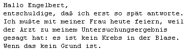Gestern erhielt ich folgende Antwort auf eine Mail:
