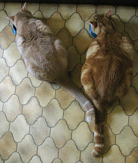 ... die Ringelschwänze der Beiden zeigen.