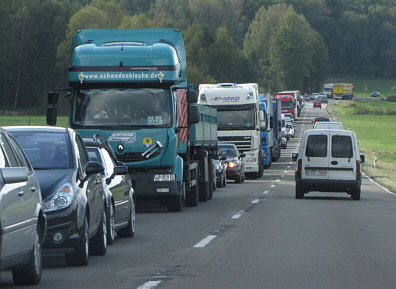das Lästige des Tages: gesperrte Autobahn, Stau auf der Landstraße