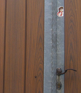 Wunderbar gespätstückt (ich war mit Beate dort, wo ich vorgestern mit Birgit und Mariechen war) und danach einen Aufkleber an ein Hoftor gepappt.