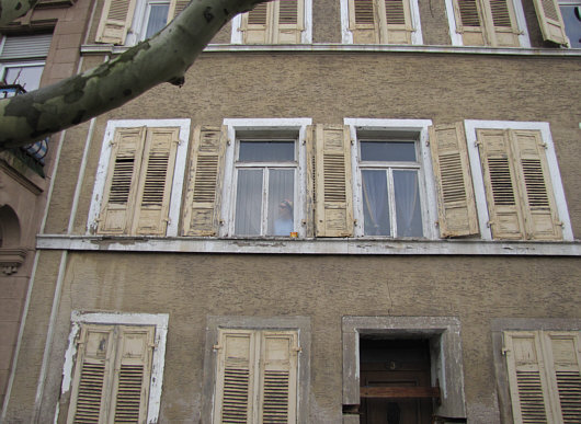 Der Mann wird jetzt gerade aus dem Fenster schauen.