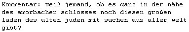 Ein Kommentar vom Lichtblick mal hierher geholt ... vielleicht weiß ja ein Tagebuchleser etwas vom alten Juden bei Amorbach ...