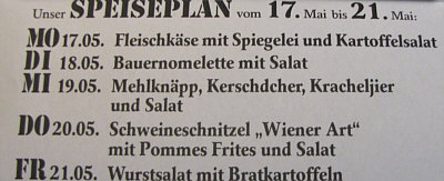 Aha ... es gab also Bauernomelette als Tagesgericht und ich ließ mir erklären, was da so drin sei. Aha ... Eier, Lyoner, Erbsen, Kartoffeln ... ist okay. War auch gut ... und dann fiel mein Blick auf das heutige Tagesgericht ... Mehlknäpp, Kerschdcher, Kracheljier ... ich werd wahnsinnig ... das Essen meiner Jugend ... und ich hätte Gelegenheit, mal nicht meine Variante, sondern die offizielle Saarlandversion zu essen.