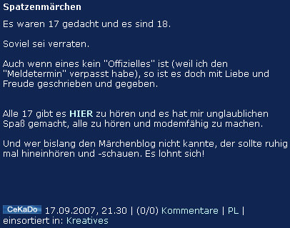 Engelbert 18.09.2007, 01.37| (12/4) Kommentare (RSS) | PL | einsortiert in: bloggerwelt