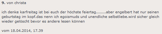 Engelbert 20.04.2014, 14.20| (9/0) Kommentare (RSS) | PL | einsortiert in: sonstiges