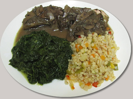 Knurrhahn ist ein Fisch, den man unter Champignons legen kann. Ebly ist Hartweizen, also quasi die Vorstufe von Nudeln, wenn da noch ein wenig knackiges Gemüse drin ist, ist das auch mal schön. Spinat kann auch ohne Blubb von der Zunge geliebt werden. Da ich noch nix gegessen habe, träume ich mich zu gestern Abend zurück. Man müsste manchmal einfach ne Kopie von einem Teller machen können ;).