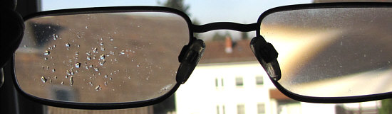 ... gegen das Lipom im Auge tun ... ich hab das schon einige Jahre lang ... aber nun: wech damit. Denn nach einer Stunde spazieren sieht meine Brille so aus: