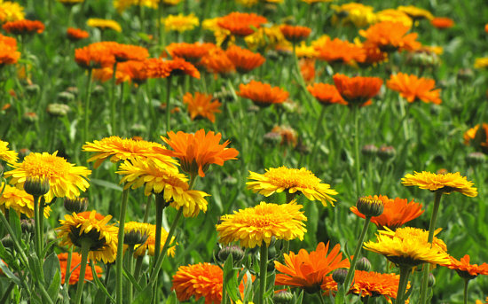 Diese Ringeblumen waren zwar Teil der Kunst bzw. einer Gesamtskulptur (die ich nur hätte fotografieren können, wenn ich auf den Turm der Burg gegangen wäre, was ich aber nicht wollte, meine Füße waren schon rund), aber isoliert gesehen als Natur sind sie ebenfalls ein sehenswertes Kunstwerk.