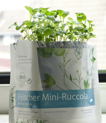 War neugierig, was aus diesen Pflanztüten wächst ... da ist schon Erde drin und ein Tütchen mit Samenkörnern ... von denen ich aber nur ein Drittel gesät hatte ... heute war Ernte ... und diese wurde dann auf dem Frühstücksbrot vertilgt ... kleine nette Spielerei. Mini-Rettich hab ich auch noch ... den säe ich als nächstes.