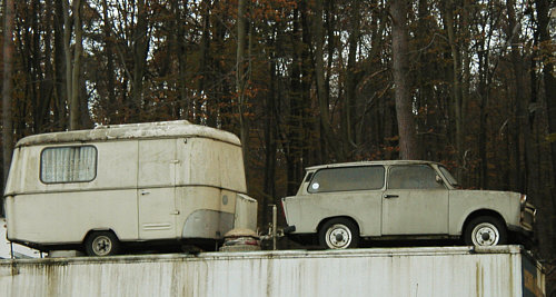 Der steht dort schon lange nicht mehr ... nur noch ganz selten sieht man Trabbis und wenn, dann sind sie so gut wie im Originalzustand, sondern "aufgehübscht".