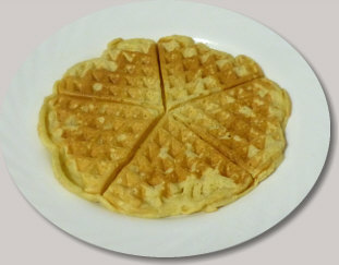 ... ein Ei, Milch ... und dann eine ziemlich reife klein geschnittene Banane dazu. Pürieren ... Mehl dazu, bis die gewünschte Konsistenz erreicht ist ... nicht würzen, nicht zuckern ... ab ins Waffeleisen ... fotografieren ... nach dem Foto etwas Puderzucker drüber ... und dann essen und hineinlegen oder so ;)).